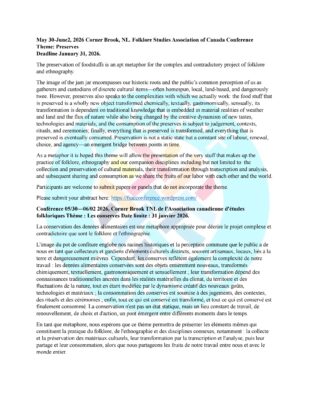 Appel à communications – Congrès 2026 de l’ACEF : Les conserves (date limite : 31 janvier 2026)