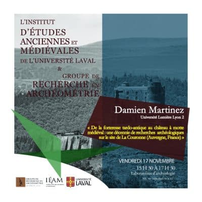 L’Institut d’études anciennes et médiévales de l’Université Laval et le Groupe de recherche en archéométrie vous invitent à la conférence « De la forteresse tardo-antique au château à motte médiéval : une décennie de recherches archéologiques sur le site de La Couronne […]