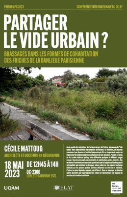 Dans le cadre de la série de conférences internationales « Les temps qui viennent », Cécile Mattoug, architecte et docteure en géographie, présentera une conférence intitulée « Partager le vide urbain? Brassages dans les formes de cohabitation des friches de la banlieue […]