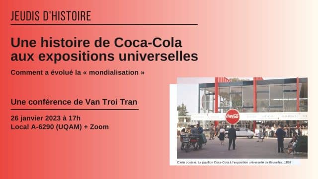 Le Groupe d’histoire de Montréal vous convie à la conférence comodale « Une histoire de Coca-Cola aux expositions universelles : comment a évolué la “mondialisation” », qui sera présentée à l’UQAM (local A-6290) le jeudi 26 janvier à 17 h […]