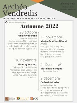 Timothy Scarlett (Michigan Technological University) fera une presentation comodale en anglais intitulée « Archaeology as Co-Design in the Fight Against Climate Change: Mines, PUSH, and the Energy Transition » ce vendredi 18 novembre à 15 h 30 au local 2159 […]