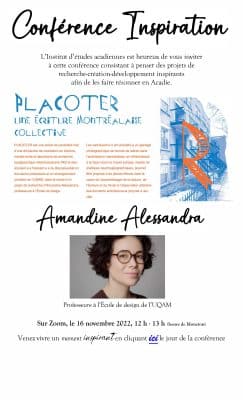 Amandine Alessandra, nouvelle membre régulière du CELAT et professeure à l’École de design de l’UQAM, présentera une conférence sur la création de la police de caractère Placoter le mercredi 16 novembre, de 11 h à 12 h (heure du Québec), […]