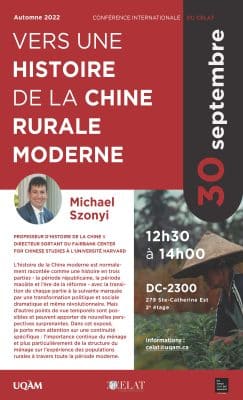 *Visionnez la conférence sur la vidéothèque du CELAT. Professeur d’histoire chinoise et directeur sortant du Fairbank Center for Chinese Studies à l’Université Harvard, Michael Szonyi présentera la conférence internationale « Vers une histoire de la Chine rurale moderne » le vendredi 30 septembre, de 12h30 […]