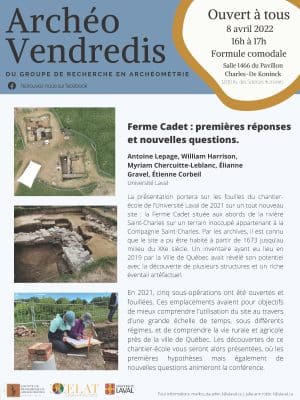 Le Groupe de recherche en archéométrie vous invite à la conférence comodale « Ferme Cadet : premières réponses et nouvelles questions », qui sera présentée le 8 avril à 16 h par les stagiaires du chantier-école 2021 : Myriam Chercuitte-LebIanc, Étienne Corbeil, Élianne Gravel, William […]