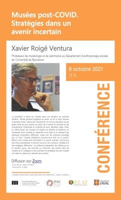 L’Institut du patrimoine culturel (IPAC), le CELAT et la Chaire de recherche sur la gouvernance des musées et le droit de la culture vous invitent à la conférence « Musées post-COVID. Stratégies dans un avenir incertain » de Xavier Roigé […]
