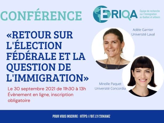 Adèle Garnier (CELAT) et Mireille Paquet prendront part au webinaire « Retour sur l’élection fédérale et la question de l’immigration », organisé le jeudi 30 septembre, de 11 h 30 à 13 h, par l’Équipe de recherche sur l’immigration au Québec et ailleurs (ÉRIQA). Inscription […]