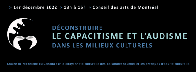 La Chaire de recherche du Canada sur la citoyenneté culturelle des personnes sourdes et les pratiques d’équité culturelle vous invite à l’après-midi d’ateliers « Déconstruire le capacitisme et l’audisme dans les milieux culturels », qui se tiendra le jeudi 1er […]