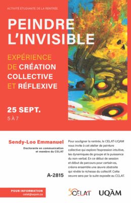 Les membres étudiant-es du CELAT-UQAM sont invité-es à une activité créative pour souligner la rentrée universitaire! Dans le cadre de sa bourse de mi-parcours 3e cycle du CELAT, notre membre étudiante Sendy-Loo Emmanuel, doctorante en communication à l’UQAM, animera un […]