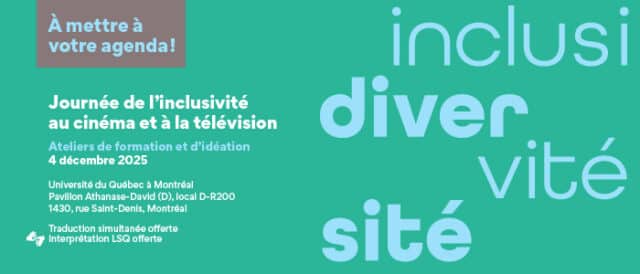 Vous êtes invité-es à une journée consacrée à l’inclusivité au cinéma et à la télévision prévue le jeudi 4 décembre, de 8 h 30 à 19 h, à l’UQAM (salle DR-200). Quatre ateliers de formation et d’idéation seront offerts afin […]