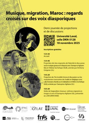 À l’occasion de la venue à Québec de deux invitées internationales, Laïla Amezian (chanteuse et coordinatrice de projets au sein de l’association HalfmOon) et Hélène Sechehaye (Université libre de Bruxelles, Conservatoire royal de Bruxelles), nous avons le grand plaisir de vous convier à un […]