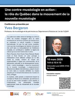 Vous êtes convié-es à la conférence « Une contre-muséologie en action : le rôle du Québec dans le mouvement de la nouvelle muséologie » que présentera notre membre Yves Bergeron, professeur de muséologie et de patrimoine au Département d’histoire de l’art de l’UQAM. Soutenue […]