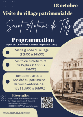 Nous vous invitons à découvrir l’histoire et la beauté du village patrimonial de Saint-Antoine-de-Tilly à l’occasion d’une visite guidée prévue le vendredi 18 octobre 2024. L’activité est organisée par notre […]