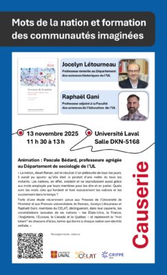 Le CELAT vous invite à une causerie autour de l’ouvrage Les mots de la nation (PUM, PUR, 2025), avec les auteurs Jocelyn Létourneau, professeur émérite au Département des sciences historiques […]