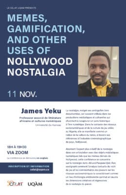 Conférence internationale de James Yékú « Memes, Gamification and Other Uses of Nollywood Nostalgia »
