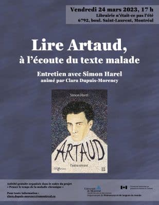 Dans le cadre du projet « Penser le temps de la maladie chronique », notre membre Simon Harel prendra part à l’entretien « Lire Artaud, à l’écoute du texte malade », animé […]