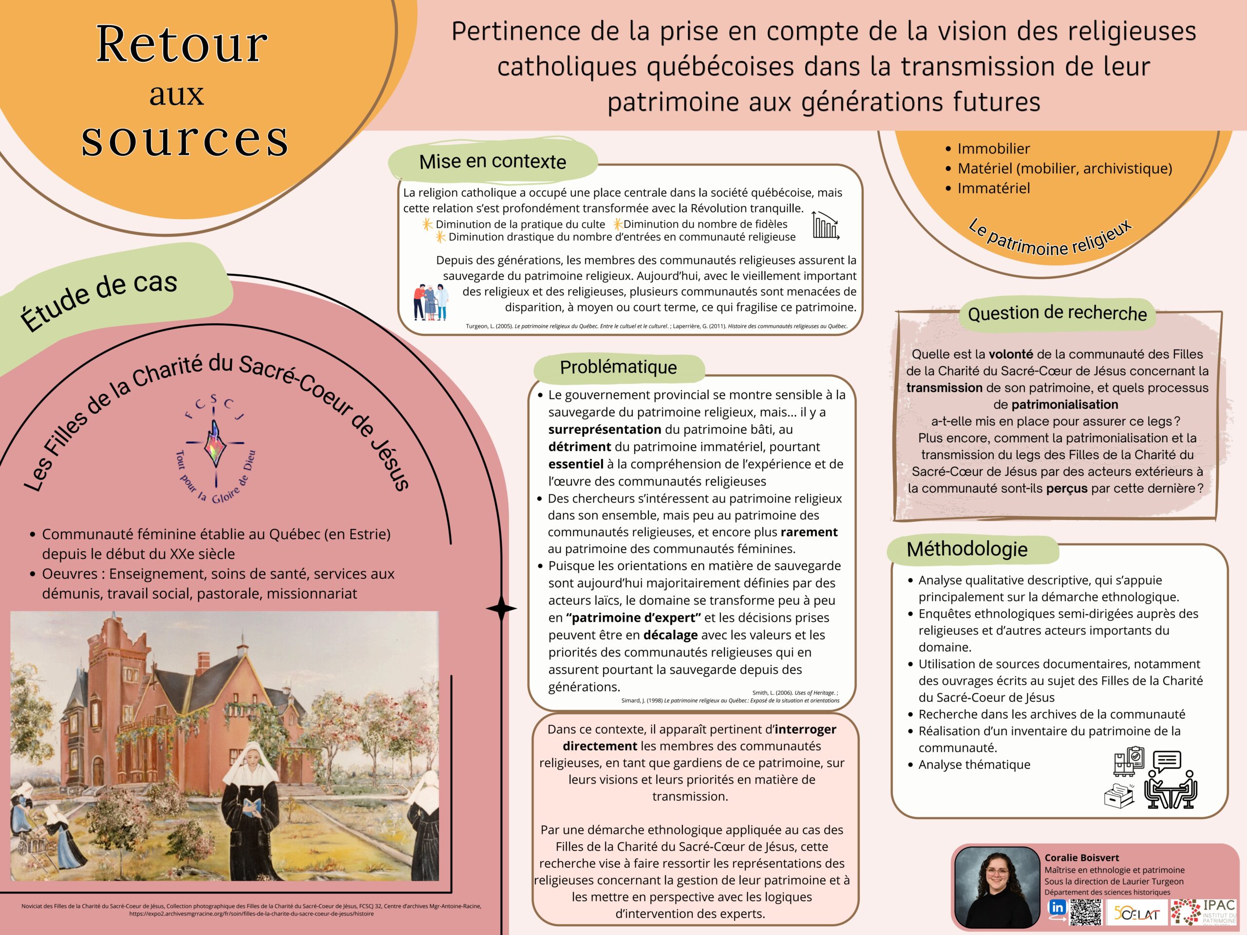 Présentation par affiche de Coralie Boisvert, « Pertinence de la prise en compte de la vision des religieuses catholiques québécoises dans la transmission de leur patrimoine aux générations futures »