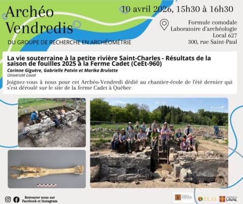 Le prochain Archéo-vendredi du Groupe de recherche en archéométrie se déroulera ce vendredi 10 avril, de 15 h 30 à 16 h 30, au local 627 des Laboratoires d’archéologie de […]