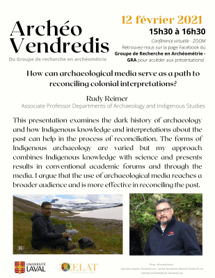 Le prochain Archéo-vendredi portera sur le thème « L’archéologie de St-Pierre et Miquelon », le vendredi 27 novembre 2020 à 15h30. Laurent Bélanger et Alexandre Naud, tous deux affiliés à l’Université Laval, […]
