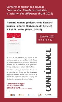 Conférence en ligne autour de l’ouvrage Créer la ville. Rituels territorialisés d’inclusion des différences (PUM, 2022)
